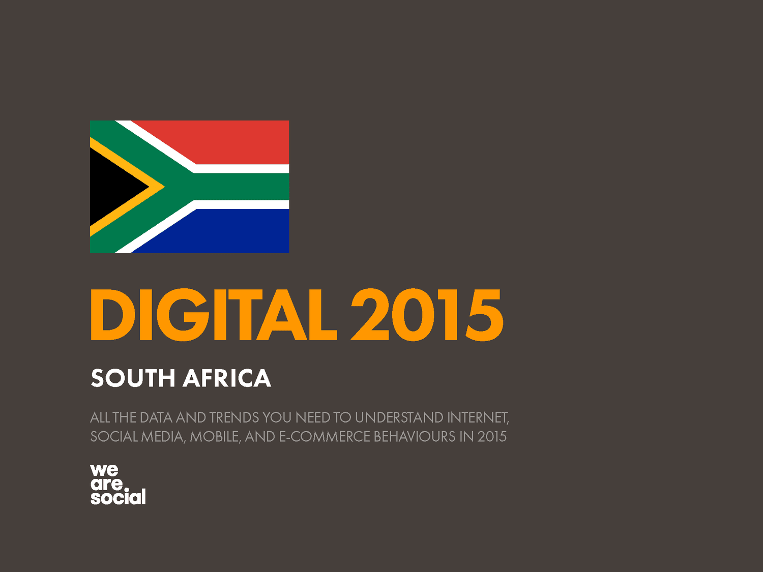 Digital 2015: South Africa Click here to download a free PDF of the complete report (you may need to sign in to SlideShare first). DigitalSimon Kemp22 January 2015Digital, Digital 2015, South Africa, Africa, Southern Africa, LocalComment Facebook0 Twitter LinkedIn0 Reddit Tumblr Pinterest0 0 Likes