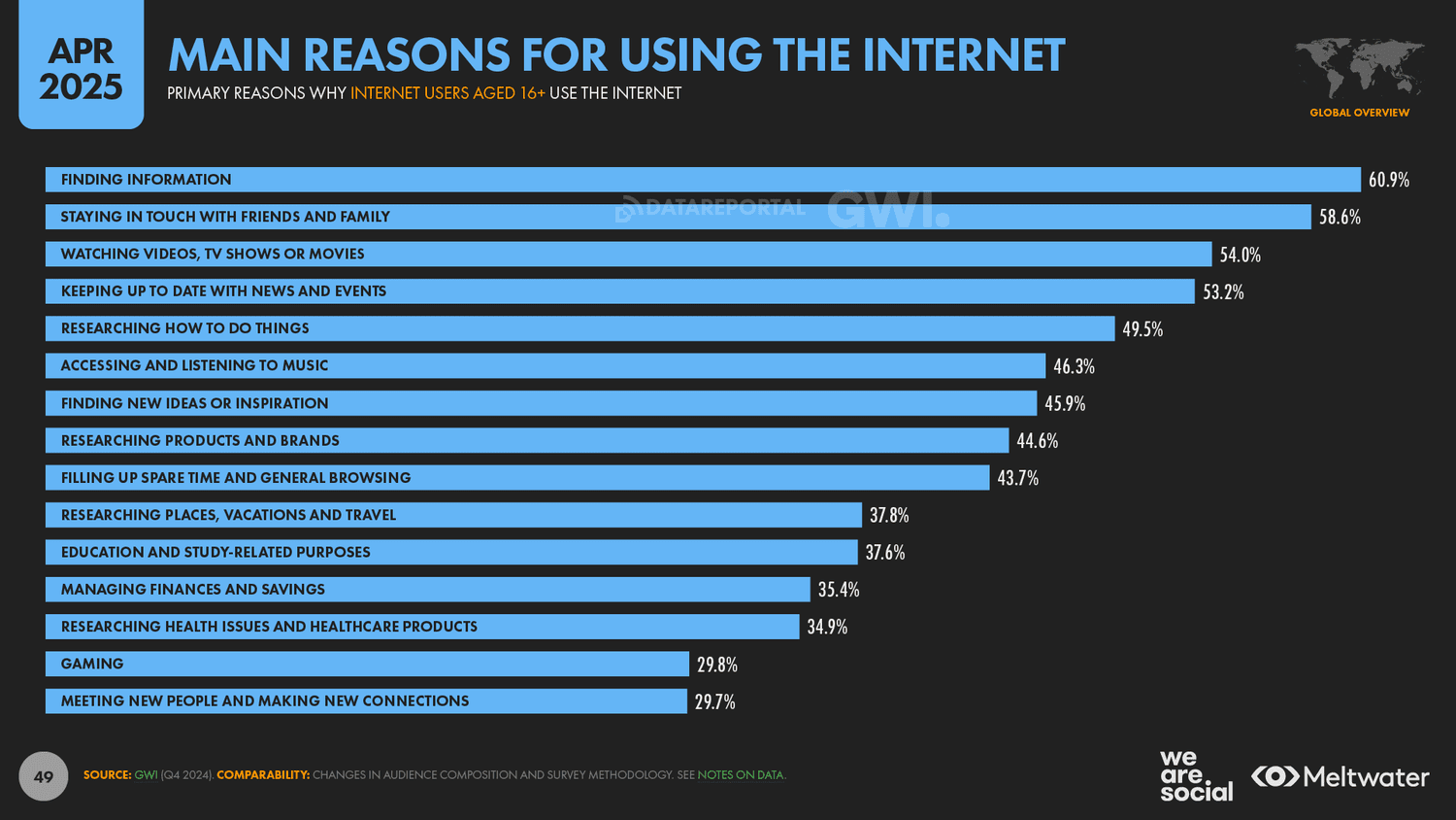 Our Digital 2025 April Global Statshot Report reveals that “finding information” remains the primary reason why people use the internet today.