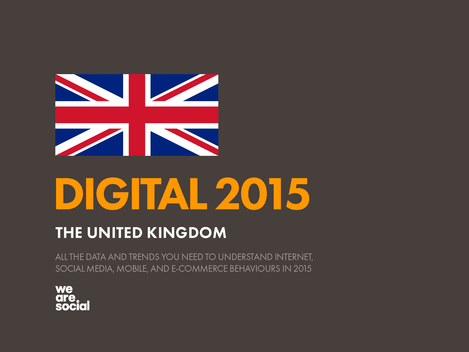 Digital 2015: The United Kingdom Click here to download a free PDF of the complete report (you may need to sign in to SlideShare first). DigitalSimon Kemp22 January 2015Digital, Digital 2015, United Kingdom, UK, Great Britain, Europe, Northern Europe, LocalComment Facebook0 Twitter LinkedIn0 Reddit Tumblr Pinterest0 0 Likes